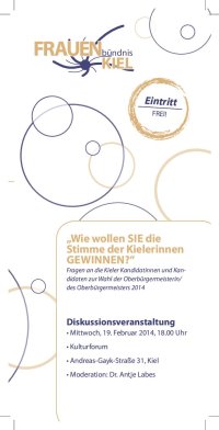 Unter der oben genannten Fragestellung werden die beiden Kandidaten für das OB-Amt (Ulf Kämpfer, Stefan Kruber) dem Kieler Frauenvolk Rede und Antwort stehen.